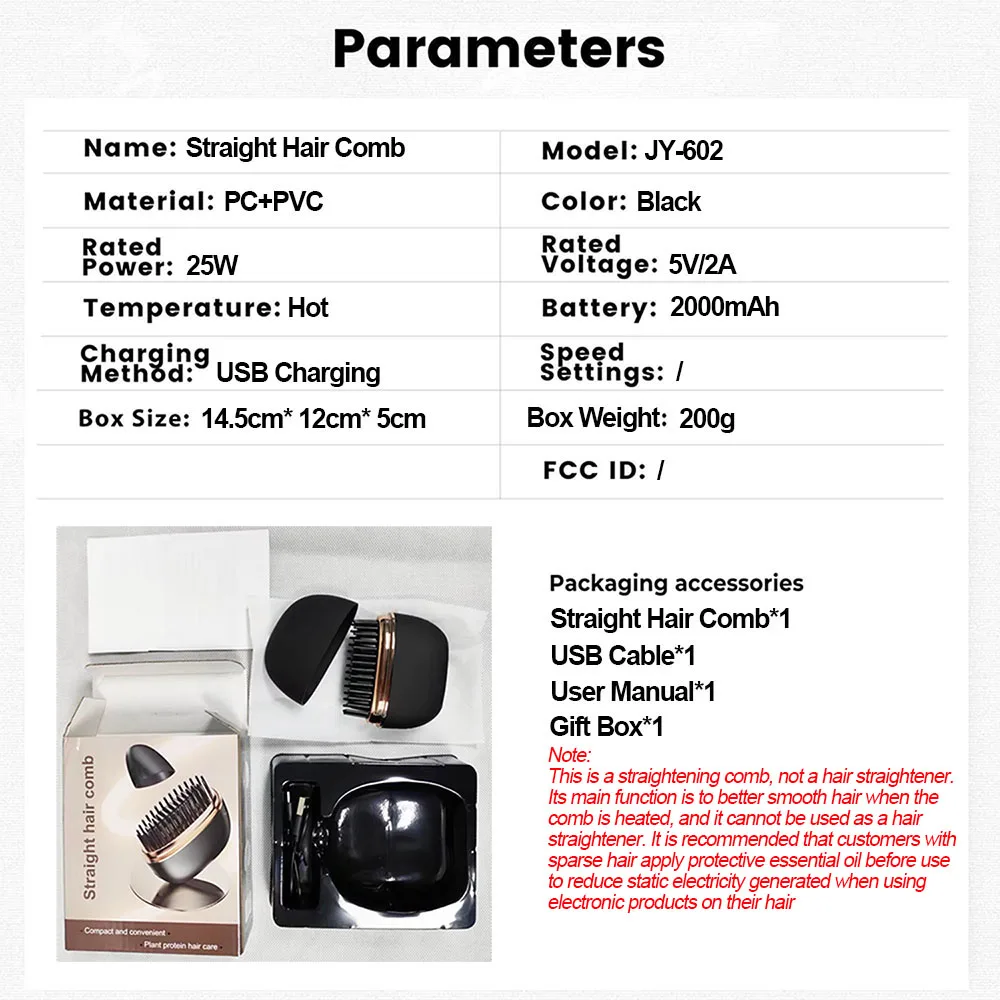 New Wireless Straightening Comb Portable USB Charging Hair Straightener Brush Heating Plates Comb for Smooth Styling Hair Styler